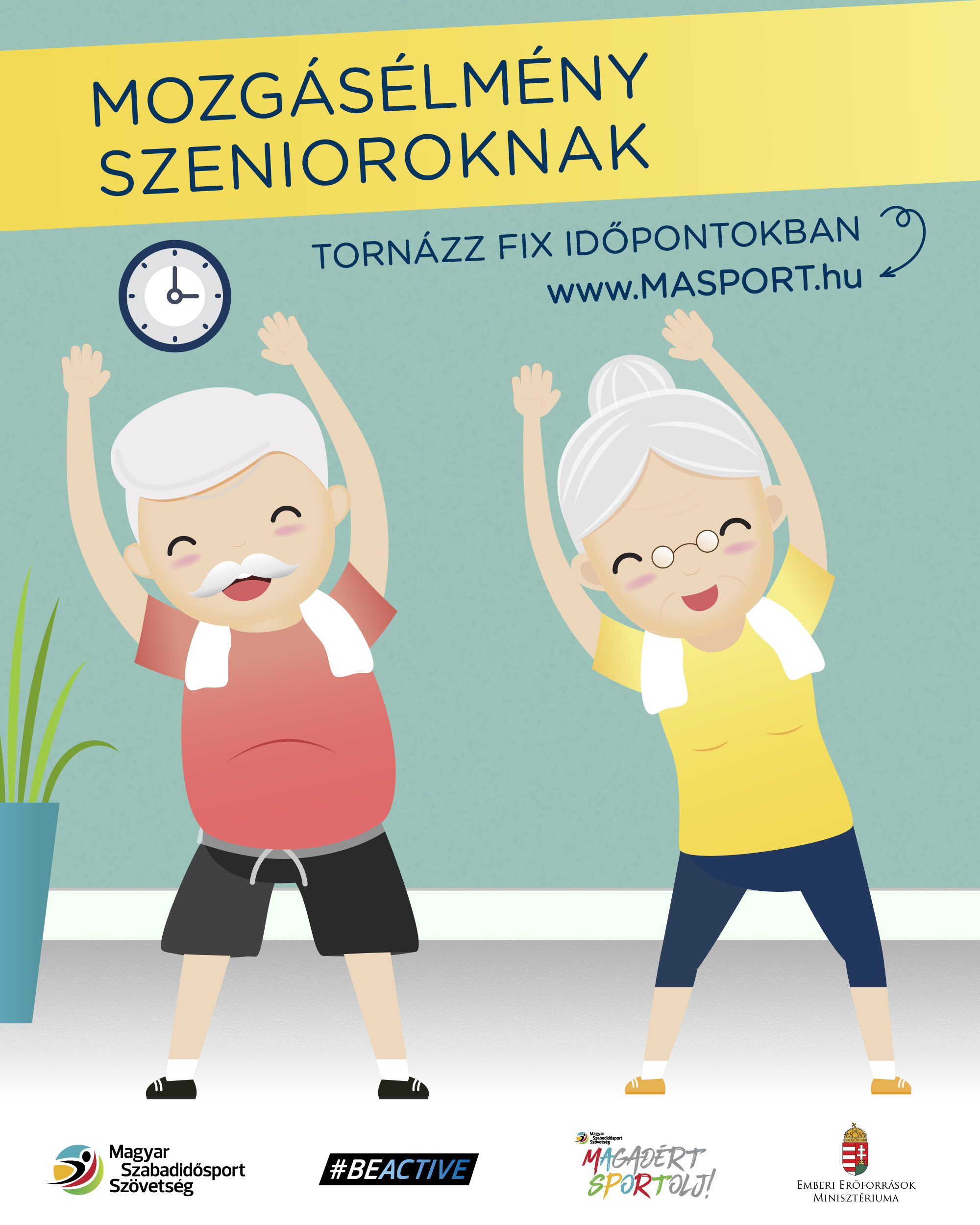 Ezen szeretne a Magyar Szabadidősport Szövetség mozgásprogramjával változtatni. A 2020. április 20-án induló Mozgásélmény szenioroknak Program segítségével az idősek otthonába on-line csatornán visszük el a mozgás élményét. A masport.hu weboldalon minden reggel 8 órakor átmozgató tornára, du 16 órától pedig különböző típusú mozgásórára invitáljuk az időseket. Oktatóink évek óta a szeniorkorú lakossággal foglalkozó jól képzett szakemberek. A program célja, hogy az idős korosztály a mozgás segítségével megőrizze vagy akár javítsa fizikai állapotát. Napi programot, ezzel értelmes rendszeres elfoglaltságot biztosítson a résztvevőknek, a mozgás segítségével győzze le az esetleges magányt, a depresszióra való hajlamot.