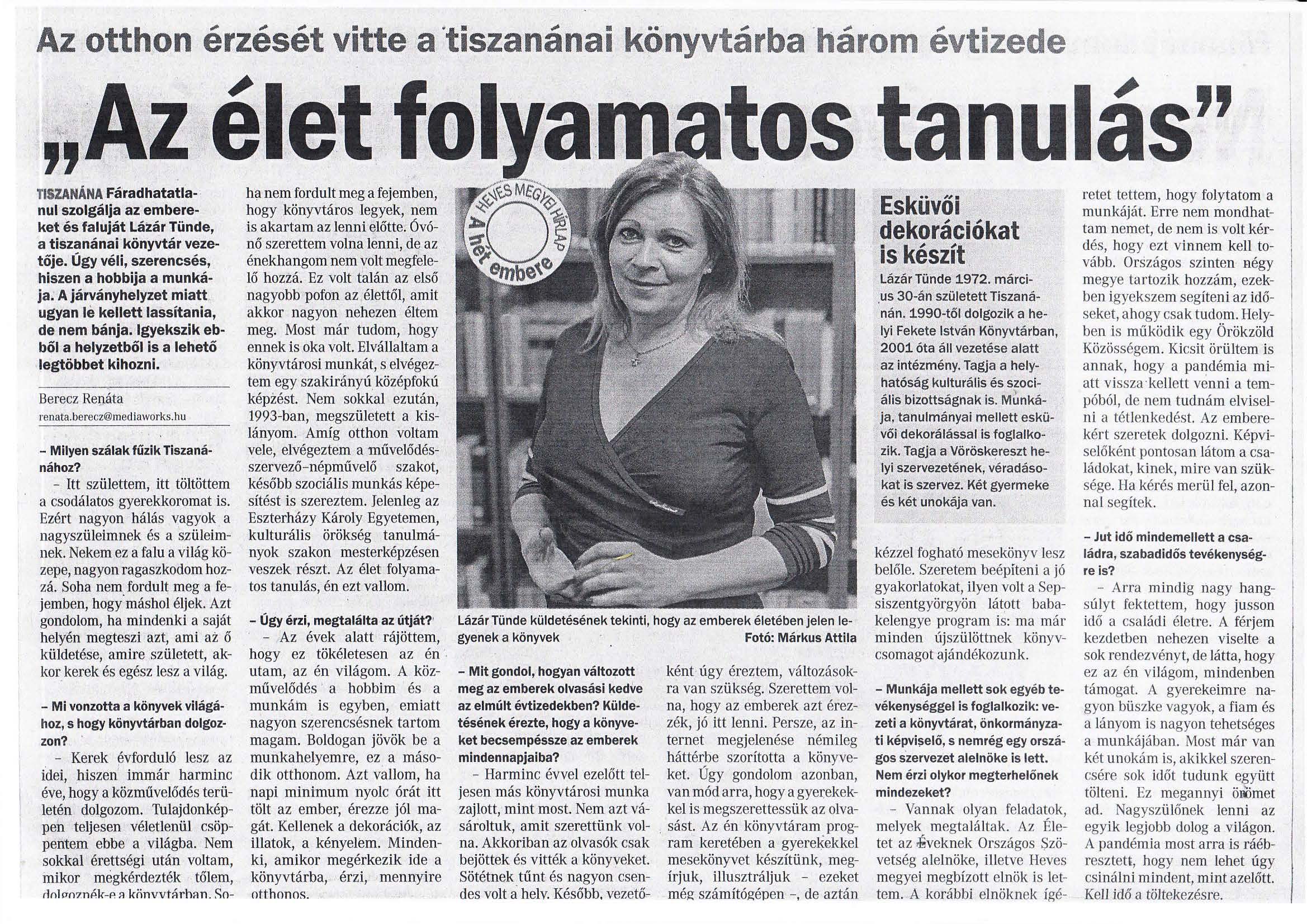 A Heves megyei szervezet megbízott elnökét, Lázár Tündét egy országos napilap és a megyei hírlap is meginterjúvolta ─ egy nap különbséggel!