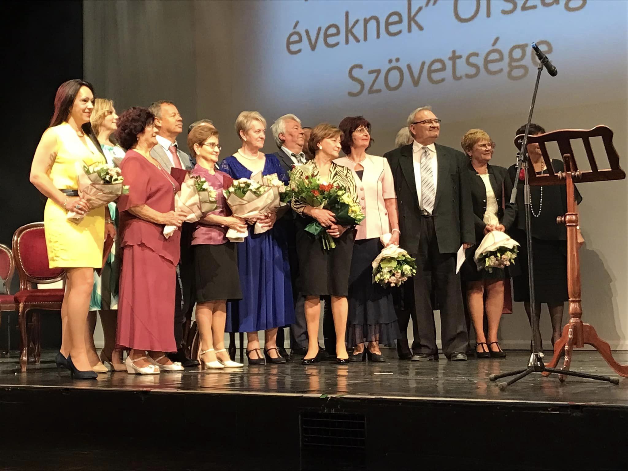 Életet az éveknek „Idősekért Díjban részesült dr. Talyigás Katalin nyugalmazott egyetemi oktató, Gombás Gáborné, a Jász-Nagykun-Szolnok vármegyei elnök, Tóth Lászlóné, a Bács-Kiskun vármegyei Szervezet gazdasági vezetője.